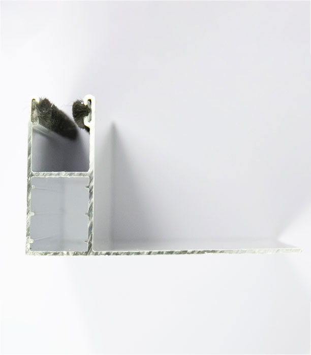 The aluminum guide laquered in white is necessary when substituting the blind’s PVC slats for aluminum ones. The guide includes blind’s mat and is introduced inside the galvanized guide installed in the original construction. Model with 100 cm. long wing.