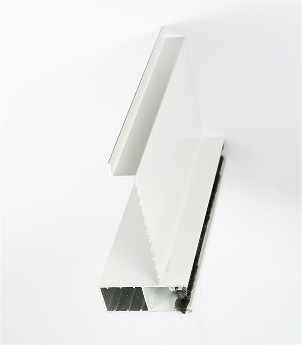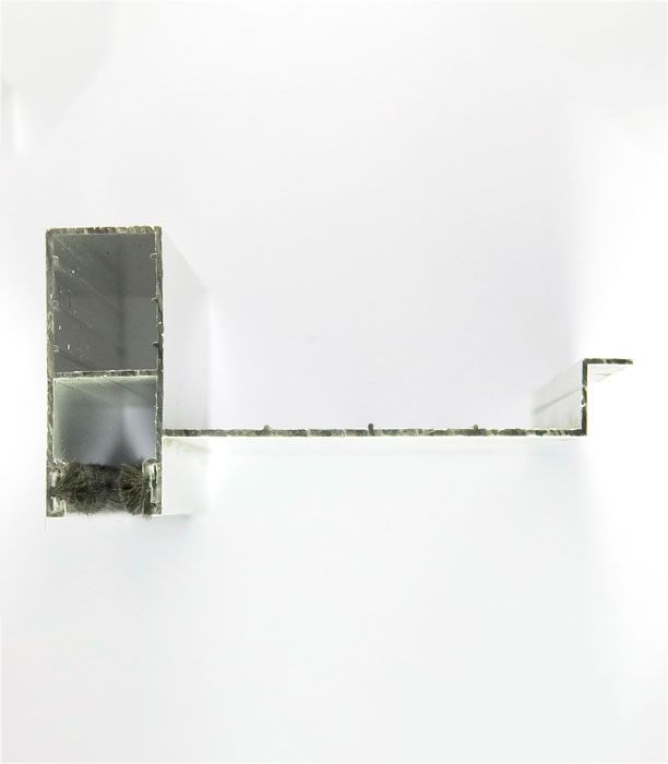 The aluminum guide laquered in white is necessary when substituting the blind’s PVC slats for aluminum ones. The guide includes blind’s mat and is introduced inside the galvanized guide installed in the original construction. Model with 84cm long wing situated in the upper box.