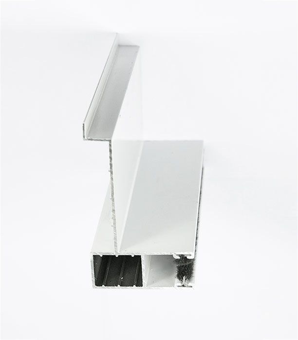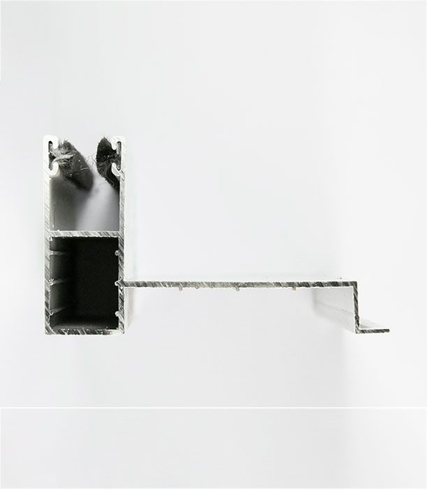 The aluminum guide laquered in white is necessary when substituting the blind’s PVC slats for aluminum ones. The guide includes blind’s mat and is introduced inside the galvanized guide installed in the original construction. Model with 84cm long wing situated in the lower box.