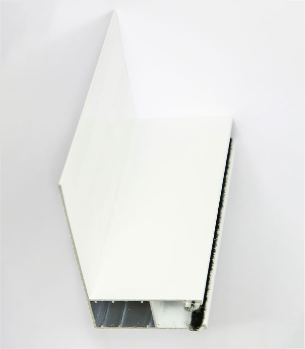 La guía de aluminio extrusionado lacado en blanco es necesaria cuando se quiere substituir las lamas de PVC por las de aluminio. La guía incluye felpudo y se introduce dentro de la guía galvanizada instalada en la obra. Modelo con ala de longitud 100cm .