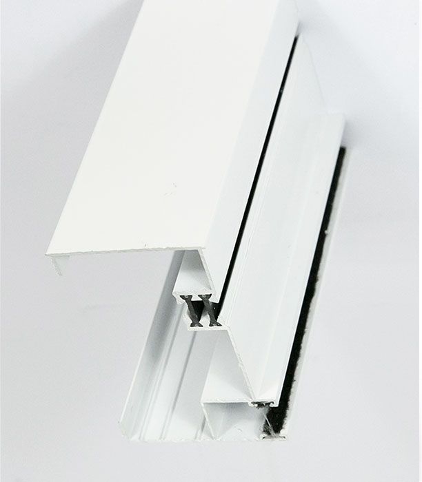 La guía de aluminio extrusionado lacado en blanco es necesaria cuando se quiere substituir las lamas de PVC por las de aluminio. La guía incluye felpudo y se introduce dentro de la guía galvanizada instalada en la obra. Modelo con cajón para recogedor y longitud de 93cm con rotura puente térmico para insulación.