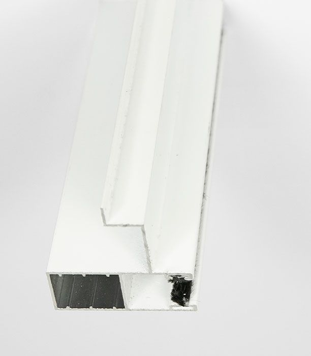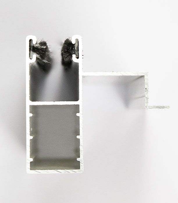 La guía de aluminio extrusionado lacado en blanco es necesaria cuando se quiere substituir las lamas de PVC por las de aluminio. La guía incluye felpudo y se introduce dentro de la guía galvanizada instalada en la obra. Modelo con ala situada en el cajón superior longitud 47cm.