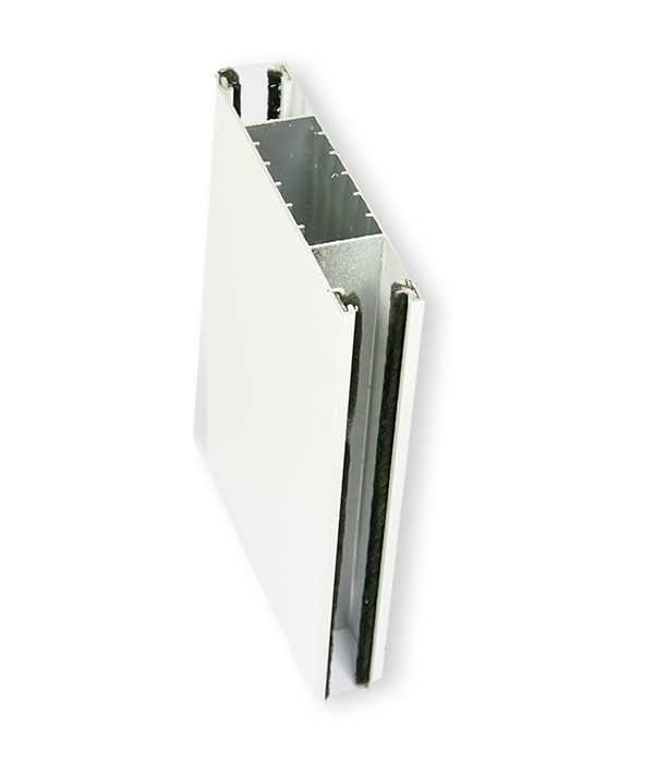 Le guide en aluminium extrudé laqué en blanc est nécessaire lorsque vous souhaitez remplacer les lames en PVC par celles en aluminium. Le guide comprend un joint en feutre et est conçu pour deux persiennes, d'une longueur de 109 cm.